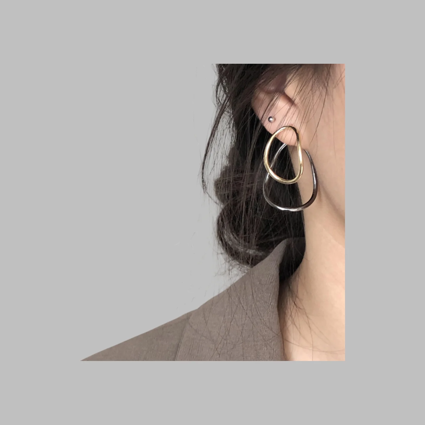 New Factory Wholesale Earrings American Retro Style Geometric Circle Earrings Trendy Irregular Multi-layered for Women